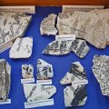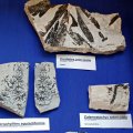 Den Schwerpunkt der paläobotanischen Exponate bilden Stücke aus den bekanntesten Fundhorizonten im Hangenden des 3. Flözes und der Lette 1 des 5. Flözes mit dunklen Pflanzenabdrücken auf hellem Sedimentgestein.