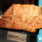 "Madensteine" sind Hornsteine mit verkieselten Blättern einer heute ausgestorbenen Baumfarnart. Die Blättchen heißen "Scolecoperis" und der Baumstamm "Psaronius". Im Botanischen Garten Dresden kann man Baumfarne bewundern: